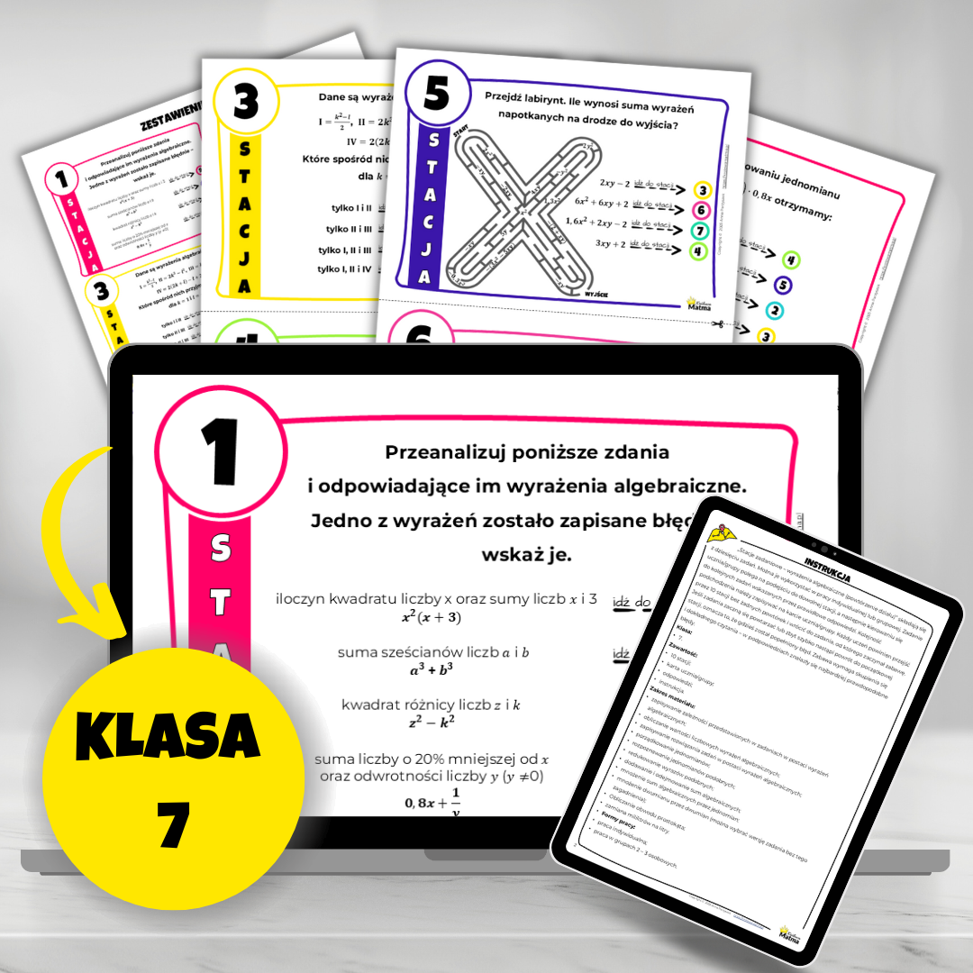 Stacje zadaniowe – wyrażenia algebraiczne (powtórzenie)